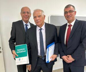מנכ״לי יוזמת ז׳נבה הפלסטיני והישראלי, נידאל פוקהה וגדי בלטיאנסקי, דיברו השבוע בפני 120 דיפלומטים וראשי...